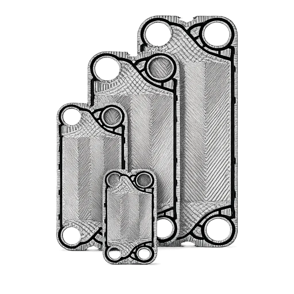 - Plate Pattern Configuration: Chevron angle, corrugation depth and flow orientation.